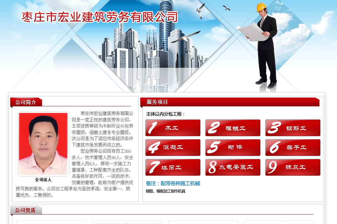 棗莊市宏業(yè)建筑勞務(wù)有限公司是一家正規(guī)的建筑勞務(wù)公司,主項(xiàng)資質(zhì)等級(jí)為木制作業(yè)分包勞務(wù)壹級(jí),涵蓋土建各專業(yè)壹級(jí)。 該公司是為了適應(yīng)市場(chǎng)經(jīng)濟(jì)條件下建筑市場(chǎng)發(fā)展而成立的。 宏業(yè)勞務(wù)公司現(xiàn)有員工300多人,技術(shù)管理人員30人,安全管理人員6人,擁有一支施工力量雄厚、工種配套齊全的隊(duì)伍,具備良好的作風(fēng)、一流的技術(shù)、完善的管理,能夠?yàn)榭蛻籼峁﹥?yōu)質(zhì)可靠的服務(wù)。公司在工程承包方面的承諾:安全第一、質(zhì)量?jī)?yōu)先、工期保時(shí)。 |