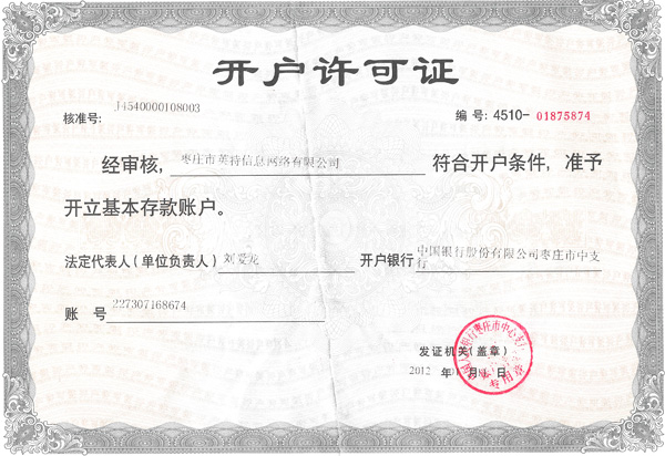 棗莊市英特信息網(wǎng)絡有限公司公戶信息