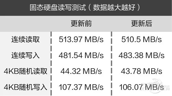 從測試可以看出,更新KB4056892前后,CPU、內(nèi)存和固態(tài)硬盤的性能沒有明顯的變化,數(shù)據(jù)的出入可以認為在誤差范圍內(nèi),因此本次更新對我們手上這套硬件平臺來說并沒有顯著的影響。